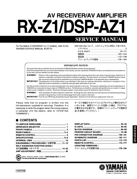 At present you are looking regarding an Yamaha Dsp Az1 Rx Z1 Service Manual Repair Guide example that will we provide here inside some type of document formats many of these as PDF, Doc, Energy Point, and also images that will will make it easier for you to create an Yamaha Dsp Az1 Rx Z1 Service Manual Repair Guide yourself. For a better look, you may open some examples below. Each of the examples about Yamaha Dsp Az1 Rx Z1 Service Manual Repair Guide with this site, we get from many sources so you may create a better record of your own.