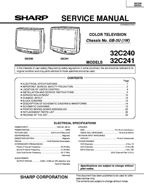 Currently you are looking regarding an Sharp 32c240 32c241 Color Tv Repair Manual example that we provide here in some kind of document formats like as PDF, Doc, Strength Point, and in addition images that will make it easier for you to create an Sharp 32c240 32c241 Color Tv Repair Manual yourself. For a clearer look, you may open several examples below. All the examples about Sharp 32c240 32c241 Color Tv Repair Manual on this web site, we get from many sources so you may create a better file of your own.